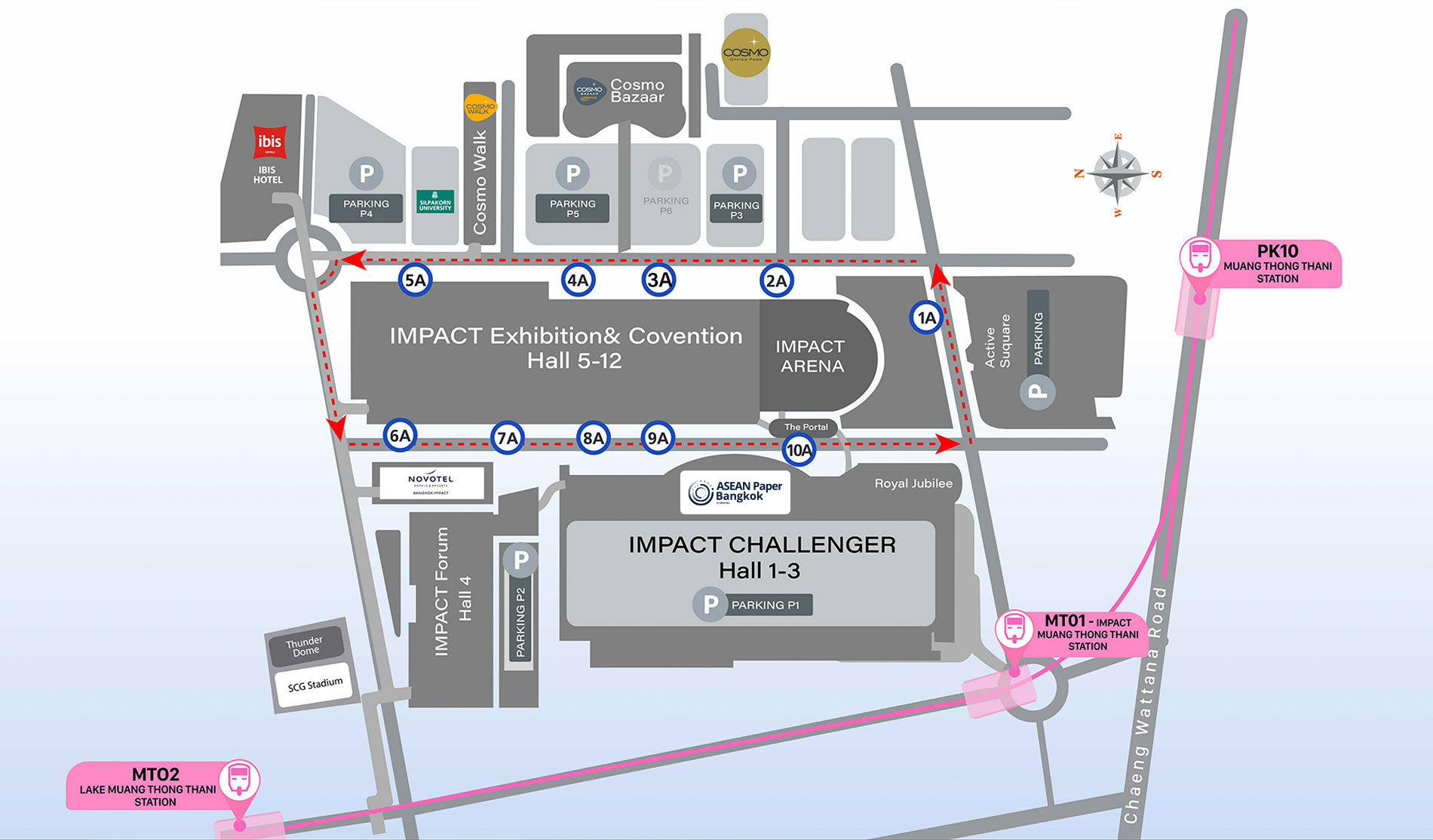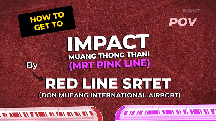 More convenient than ever! Travel to IMPACT Muang Thong Thani via the Pink Line Monorail. Transfer at Muang Thong Thani Station (PK10) to connect to the Pink Line Extension.